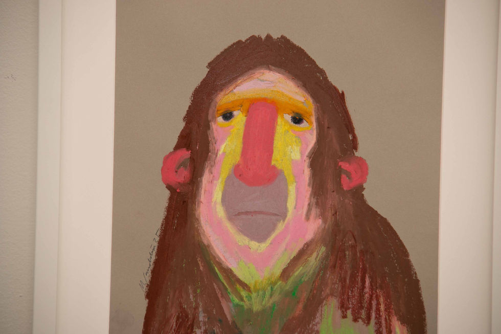In 2020, Maria began creating a colourful series of Primate Portraits rendered in rich oil pastel and rapidly made a name for herself on the underground art market and immediately sold out online.