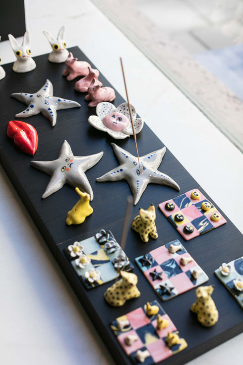 The core of her art is color, patterns and shiny surfaces. Storm is a magpie that is drawn to everything that glitters, whether it is silk fabrics or a glazed porcelain clay. Her expression is naive and she wants to replace the Scandinavian interior design ideal "bright and fresh" with "crazy and motley".